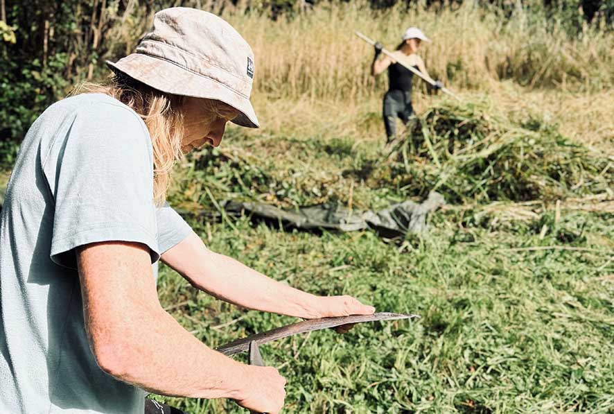 Der Erwerb einer Wiese, eines Waldes oder eines Moores bringt aber auch eine große Verantwortung mit sich: Die Naturparadiese müssen regelmäßig gepflegt werden! Ehrenamtliche Helferinnen und Helfer unterstützen den Naturschutzbund beim mühsamen Entbuschen von Mooren, beim Anlegen von Amphibientümpeln oder beim insektenschonenden Mähen von Streuwiesen. Dort, wo ein Ankauf eines wertvollen Lebensraumes nicht möglich ist, versucht der Naturschutzbund zumindest über einen langjährigen Pachtvertrag das Gebiet zu erhalten und naturschutzfachlich optimal zu bewirtschaften.